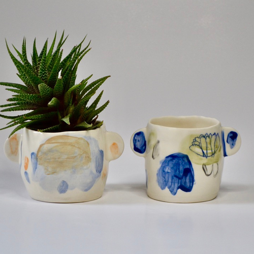 Isabelle Simard est une artiste céramiste, fleuriste et horticultrice. Ses différentes postures lui permettent d’étudier l’intemporalité et la précarité de la matière, c’est-à-dire de travailler avec la nature et non contre elle. Son travail est contemporain et instinctif : les motifs évoluent en fonction du geste et de l’humeur, qui évoque, pour elle, le moment présent. L’intuition la guide dans chaque geste et c’est ce qui construit son travail dans une expression directe et non formelle. Depuis sa résidence en céramique a Rozynski, elle développe l’approche sculpturale de son travail. Pour elle, l’objet du quotidien est une pièce unique que chacun choisira pour ses qualités artisanales et ludiques, bien au-delà de l’utilitaire et du sacré.